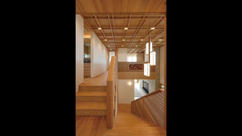 格天井、格⼦、繊細な組⼦、透かし彫り、丸窓など、和の要素を随所に取り⼊れながら、現代⾵にアレンジして展開しています。